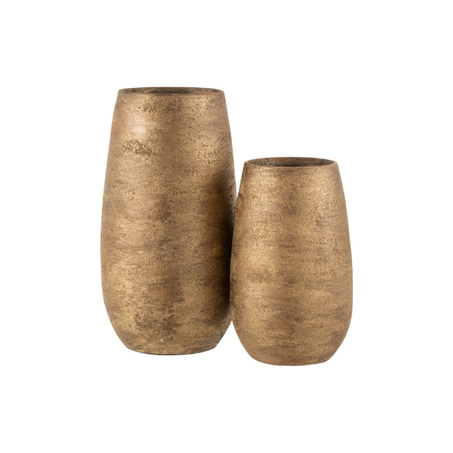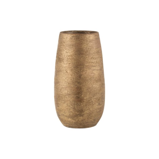 De combinatie van robuust aardewerk en de luxe gouden kleur maakt deze grote gouden vaas veelzijdig inzetbaar. Of je nu kiest voor een volle bos bloemen of de vaas als los decoratief object neerzet: hij voegt altijd sfeer en warmte toe aan je interieur.