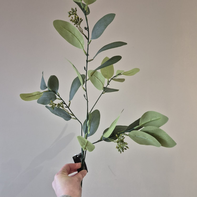 Deze eucalyptus zijdetak heeft een natuurlijke en rustige uitstraling en is uitgevoerd in zachte, groen­grijze tinten. De fijne blaadjes zorgen voor een luchtig en tijdloos effect, waardoor de tak perfect past in verschillende interieurstijlen. Mooi als losse tak in een vaas, maar ook ideaal om te combineren met andere zijden bloemen en takken voor een vol en sfeervol arrangement. Dankzij de lengte is deze tak geschikt voor middelgrote en hoge vazen.