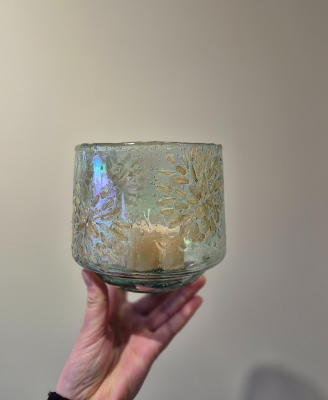 Gerecycled glas windlicht gedroogde bloem M