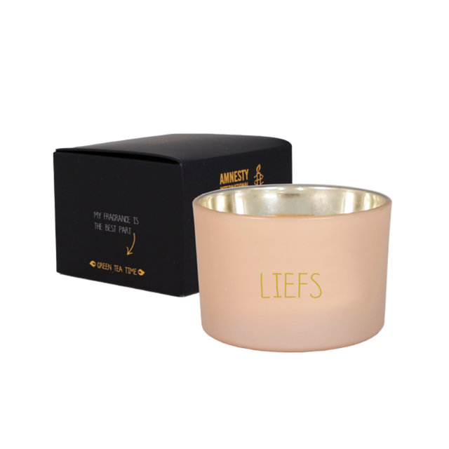 Op zoek naar een geurkaars die sfeer brengt én bijdraagt aan een goed doel? Deze biologische sojakaars van My Flame Lifestyle, ontworpen in samenwerking met Amnesty International, combineert een frisse geur met een luxe uitstraling. Het matte glas met gouden letters en de metallic gouden binnenkant maken deze kaars een stijlvolle toevoeging aan ieder interieur.