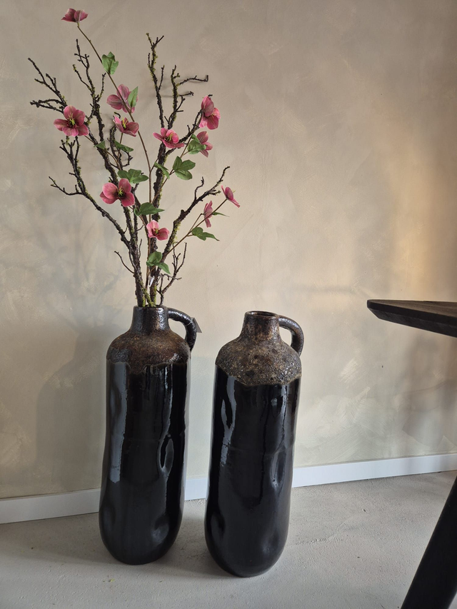 Hoge vaas zwart geglazuurd