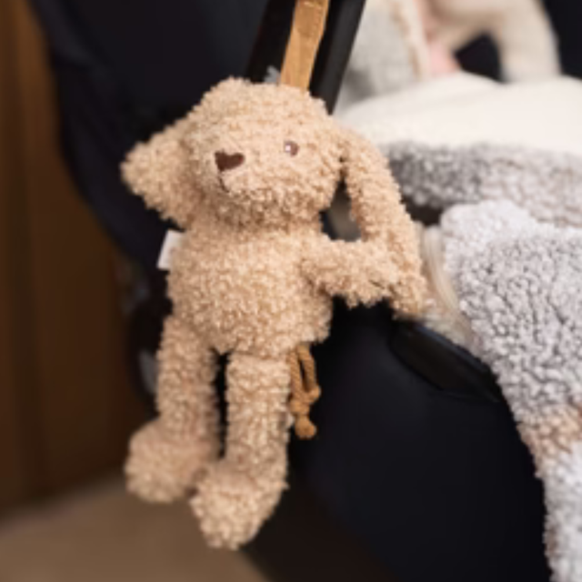 Ik ben super zacht, super schattig en té leuk om te laten liggen! Friemel aan mijn oortjes en ontdek een knisperend geluid of ontdek alle labeltjes en touwtjes die aan mijn lijfje vastzitten. Papa en mama kunnen mij gemakkelijk aan de kinderwagen, autostoel of box hangen zodat jij er fijn mee kunt spelen. Dit leuke bouclé konijn is erg leuk om te krijgen en nog leuker om te geven.