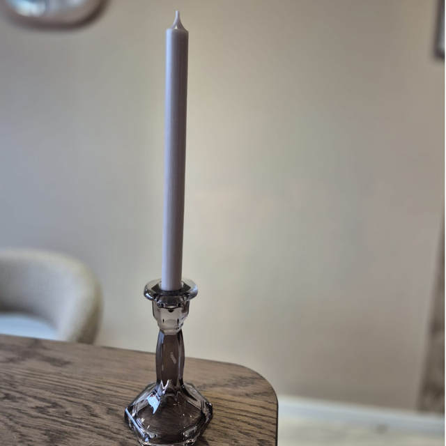 Op zoek naar een stijlvol item dat direct sfeer toevoegt aan je interieur en ook leuk is om cadeau te geven? Deze glazen kandelaar heeft een elegante vorm en een zachte, transparante smoke-tint die prachtig combineert met zowel moderne als warme woonstijlen. Het glas vangt het kaarslicht mooi en zorgt voor een rustige, luxe uitstraling.
