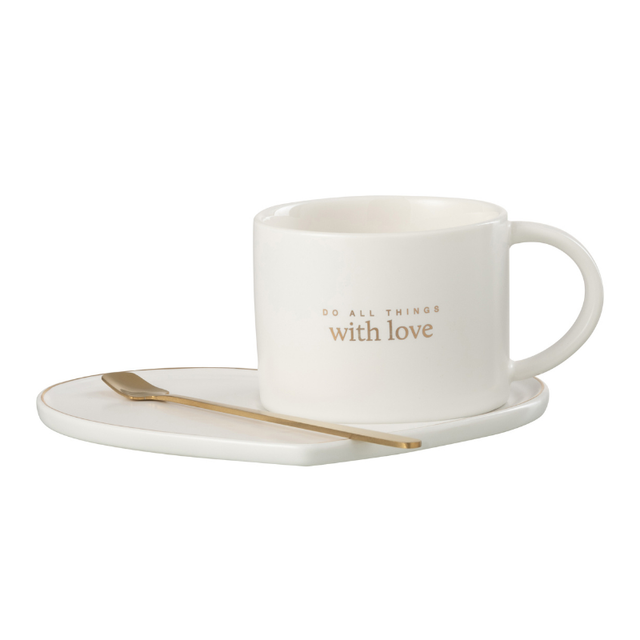 Begin je dag met een glimlach met deze charmante kop en schotel in hartvorm. Perfect om je favoriete koffie, cappuccino of thee nét dat beetje extra liefde te geven.