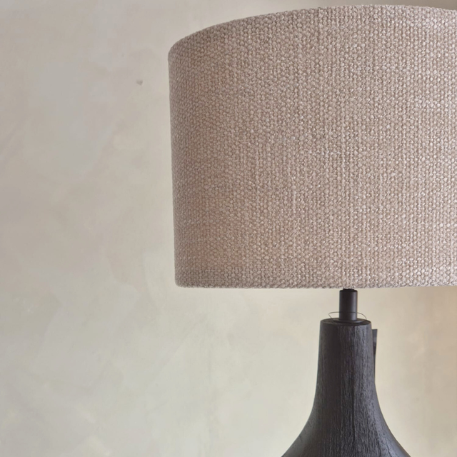 Een sfeervolle tafellamp die functionaliteit en elegantie combineert, ideaal voor wie houdt van natuurlijke materialen met een eigentijdse twist.