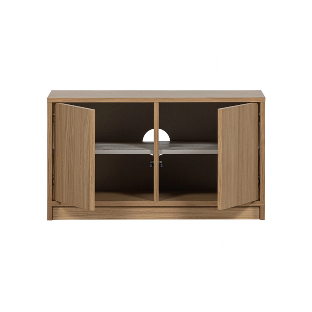 Materiaal: Eikenhout heeft een lichtbruine tint met een warme, zachtgele gloed en een zichtbare nerftekening. Het eiken fineer is afgewerkt met een beschermende coating voor extra duurzaamheid. Omdat houtfineer een natuurproduct is, kunnen kleur- en nerfverschillen voorkomen, waardoor elk meubel uniek is.
