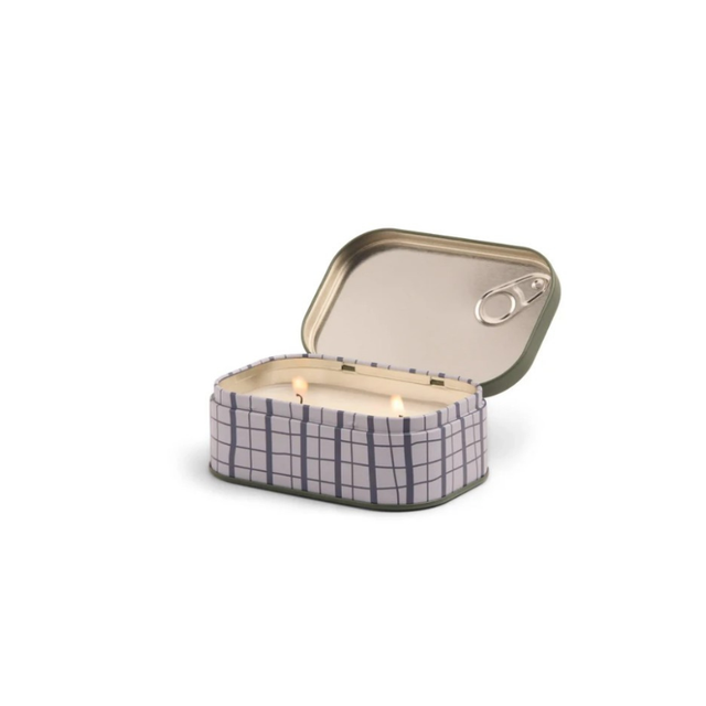 Met een speels nep-treklipje, geïnspireerd op sardineblikjes, en handgetekende illustraties zijn deze tinnen kaarsen een echte blikvanger. Dankzij de twee lonten geven ze een warme, gezellige gloed en vullen ze je ruimte met een heerlijke geur.