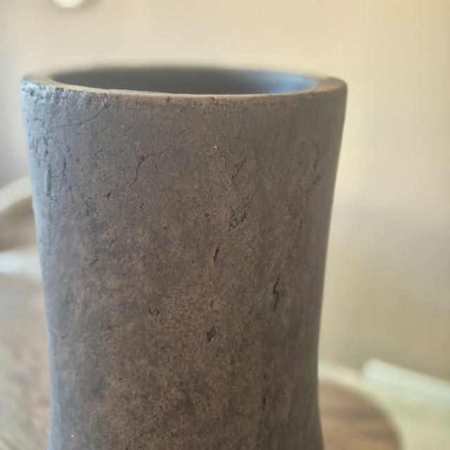 Stoere donkerbruine pot van het merk Brynxz. Door de robuuste uitstraling is deze pot ideaal voor zijden bloemen of droogbloemen. Mooi als blikvanger in je interieur, zowel op de vloer als op een kast of tafel.