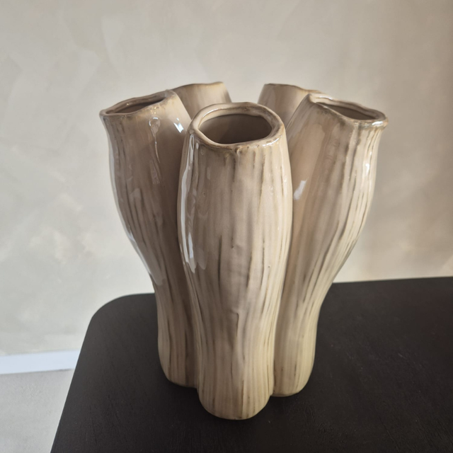 De Vaas Garber L Beige is een prachtige stenen vaas die direct een warme en stijlvolle uitstraling aan je interieur geeft. Dankzij de zachte, neutrale tint past deze vaas zowel in moderne als landelijke woonstijlen.